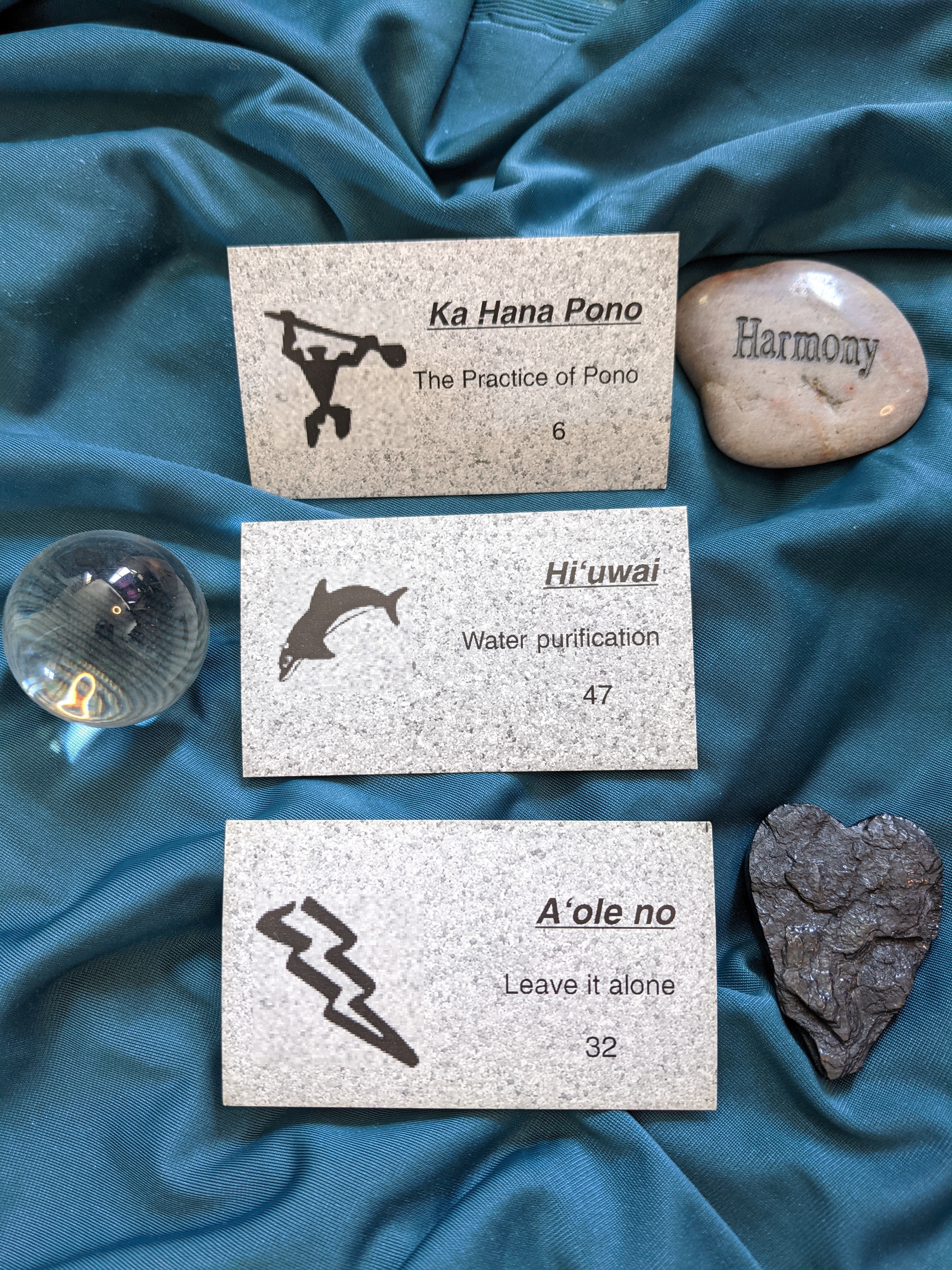 This week’s free reading comes from the Ka Hana Pono Oracle deck by Connie Rios. This deck celebrates aspects of the Hawaiian practice of Pono, living in harmony with the world and others.