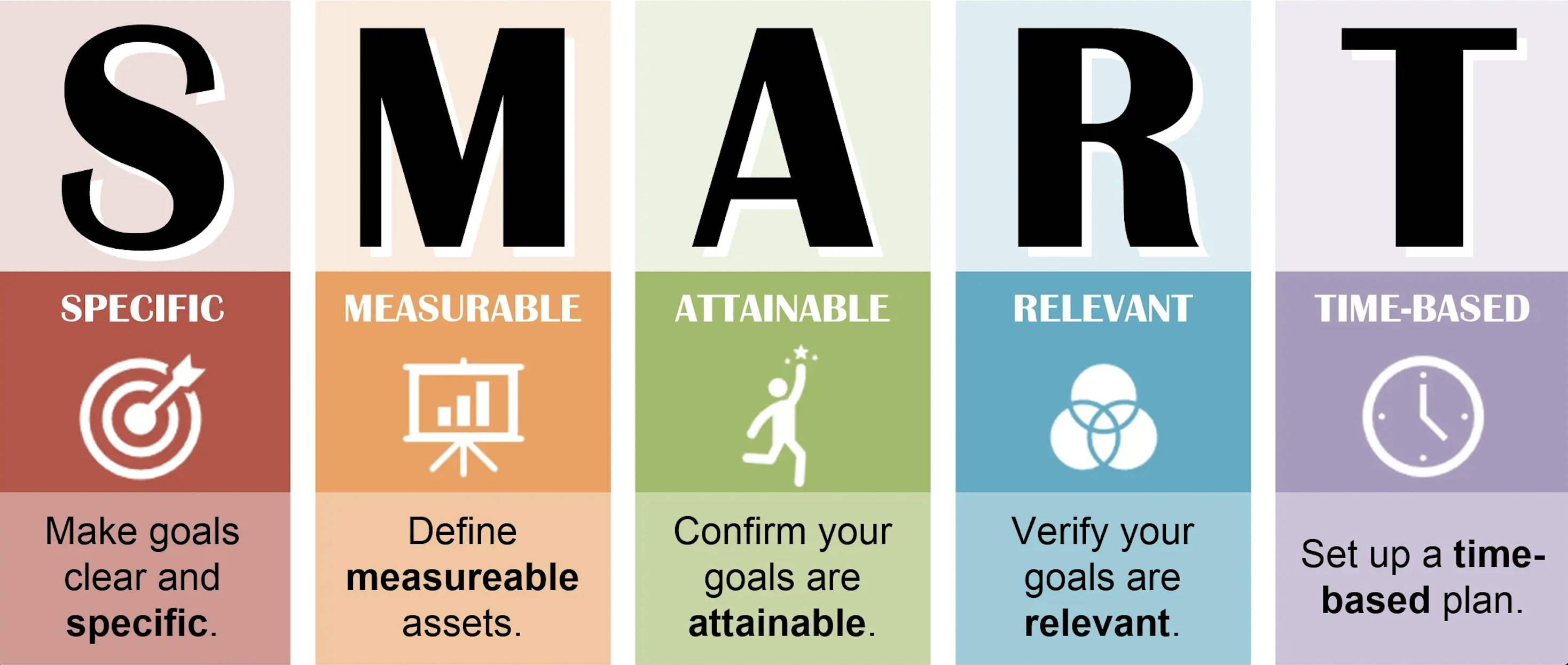 Scroll down for an outline of what makes a SMART goal, which is a current standard for setting achievable pursuits.